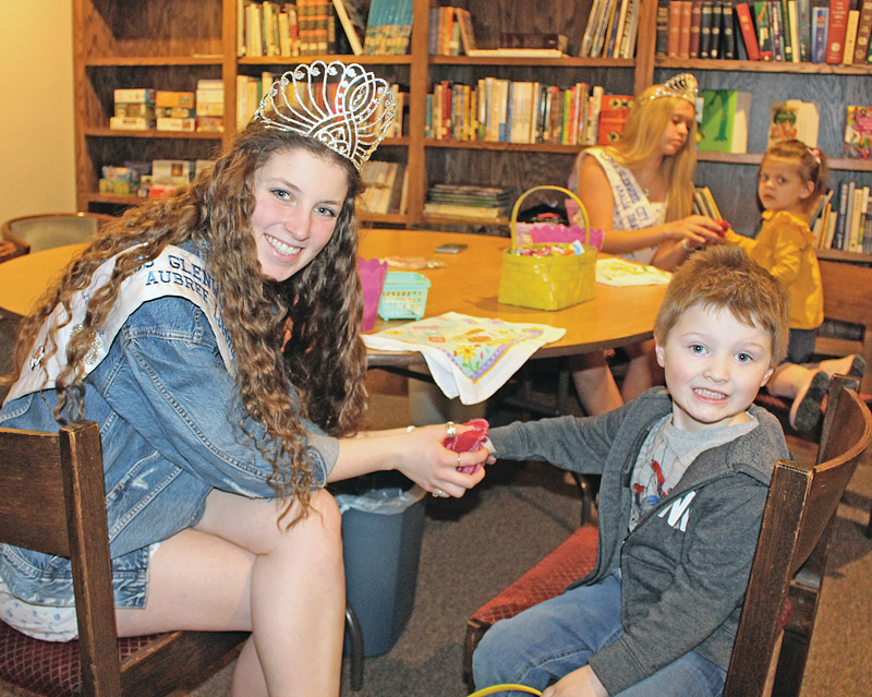 MISS GLENWOOD CITY Aubree Logghe puts a tatoo on Drew Holmquist at the Community Easter Egg Hunt held at Holy Cross Lutheran Church in Glenwood City this past Saturday, April 9. —photo by Missy Klatt