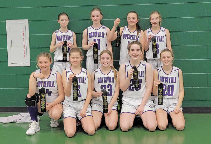BOYCEVILLE 7th Grade Girlls’ Basetball Team. Front row (L to R): Jaylin Hessler, Layla Score, Lilly Lain, Lucy Wheeldon, and Aubrey Malean. Back row (L to R): Sydney Larson, Ella Lain, Mercedes Barstad, and Ellie Engeman. —photo submitted