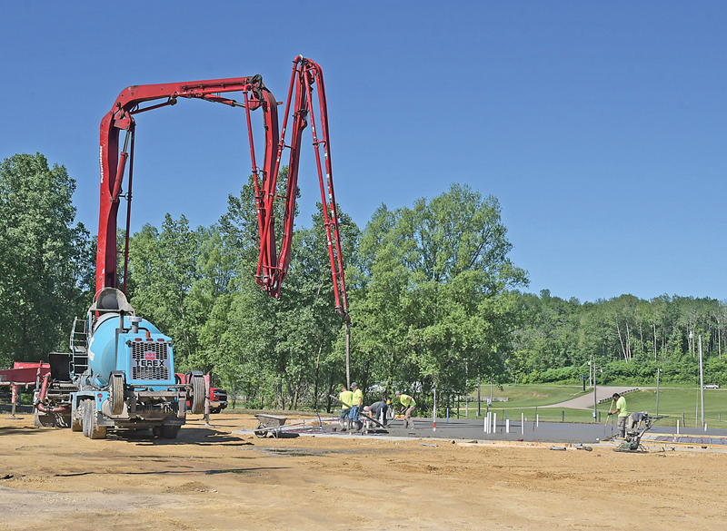 PUMPING CONCRETE — The concrete floor for Ross’ Glenwood City Lockers new facility were poured last Friday, June 17. The new structure will be located at the corner of First and Maple (State Road 170) Streets in Glenwood City just a couple of blocks south of the business’s current location. —photo by Shawn DeWitt