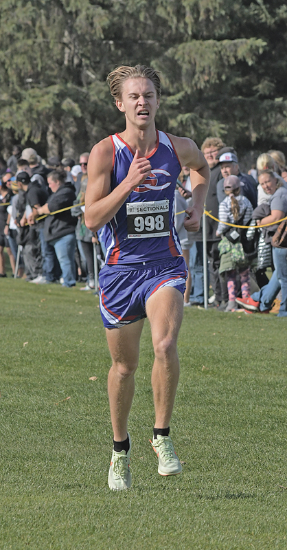 MAKING HISTORY — Senior JJ Williams became the first Glenwood City boys’ cross country runner to win a sectional championship. He accomplished the feat turning in a winning time of 16:33.1 in the WIAA Division 3 Cadott Sectional held October 22 at Whispering Pines Golf Course to help the Topper boys’ team advance to its first-ever state championship. —photo by Shawn DeWitt