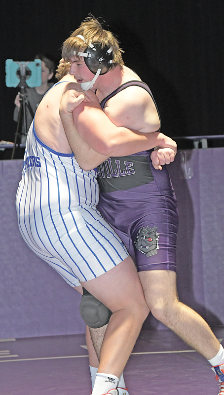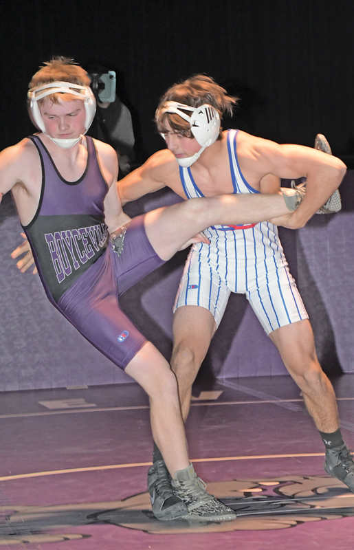 Ninth-ranked James Knight, a senior, came through with yet another pin for Glenwood City. Knotted in 2-2 battle at 120 pounds with Boyceville junior Noah Evenson, Knight worked a reversal to start the second period and then got the pin fall at 3:04.