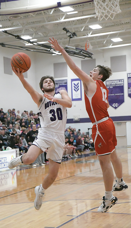 Boyceville made good use of its three-point shots hitting one every time Colfax came close. Caden Wold hit his only three of the game to give the Bulldogs a 21-13 lead with 3:33 to play in the half. When the Vikings connected on back-to-back triples, Jack Phillips downed his lone three of the evening to put the Bulldogs back in front 25-19.