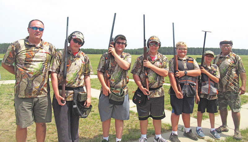 COLFAX Scholastic Trap Team members attending the SCTP State Trap Shoot at Nekoosa were (from left to right) Rob Unruh, assistant coach; Nevan Nosker, Matthew King-Berg, Nathaniel Nosker, Beaumont Zelm, Lane Unruh, and Jim Nosker, head coach. —photo submitted