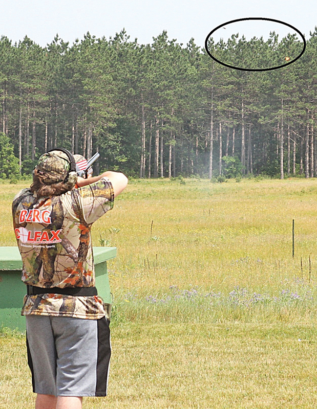 COLFAX Scholastic Trap Team’s Matthew King-Berg smashes a clay pigeon during the June 24 SCTP State Trap Shoot at Nekoosa. —photo submitted