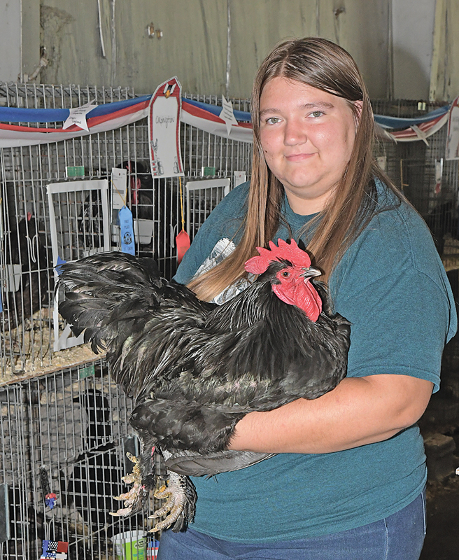 TOP POULTRY — Jordyn Rock of Glenwood City, who showed under the American Poultry Association banner, won a Grand Champion Ribbon on her Langshan (Asiatic) rooster at the 2023 St. Croix County Fair which ran July 19-23 at the fairgrounds in Glenwood City.