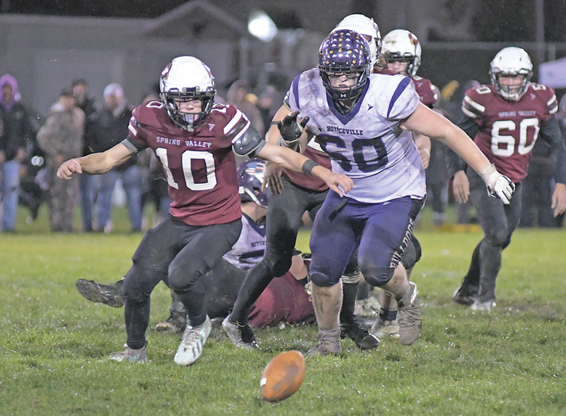 SPRING VALLEY — The Boyceville Bulldogs sported a one-game advantage over Spring Valley heading into the pair’s regular season and conference football finale October 13. A win would secure an outright conference title for the Bulldogs long in the making, while a loss would put them in a tie for the title and reinforce their struggles against the Cardinals, who entered the contest ranked ninth in the Division 7 coaches state poll.