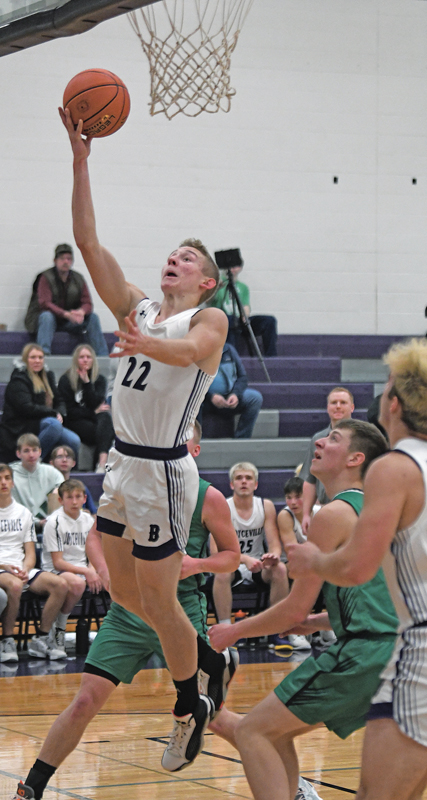 SENIOR Devin Halama scored two points for the Bulldogs in their December 1 non-conference home basketball game versus Prairie Farm. Boyceville won the game. —photo by Shawn DeWitt