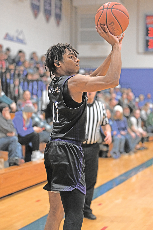 CORNER THREE — Boyceville senior Caden Wold launched a three-point shot attempt from the corner during the Bulldogs’ Dunn-St. Croix boys’ contest in Glenwood City January 11. Wold made three triples and finished with 11 points. —photo by Jacob Maes Photography