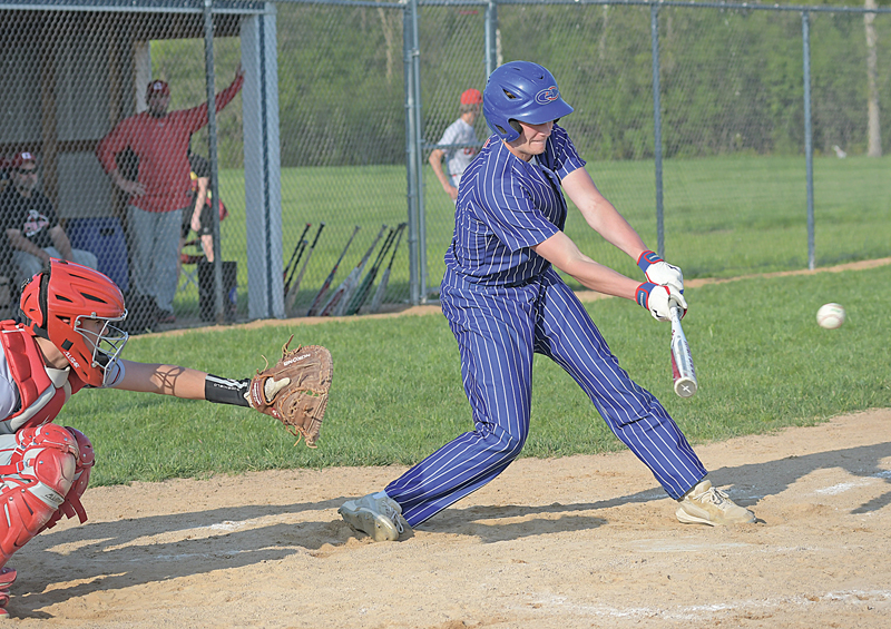 TOPPER Andrew Blaser takes a swing at a pitch during a May 13 home baseball game versus Colfax. Glenwood City won the conference game 16-6. —photo by Shawn DeWitt