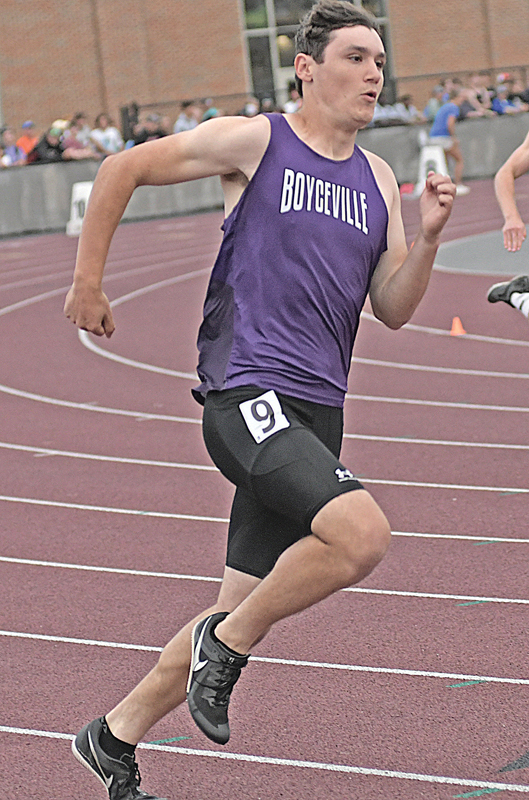 BOYCEVILLE senior sprinter JJ Kurschner is shown competing in a Division 3, 200 meter dash heat race Friday afternoon, May 31 at the 2024 WIAA State Track and Field Championships held in La Crosse. Kurschner finished 15th in the event with a time of :23.37.