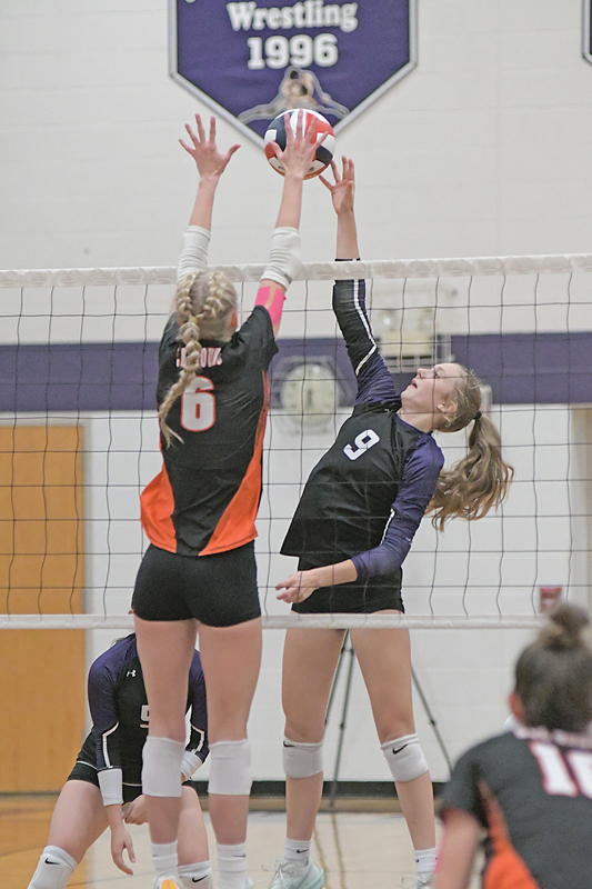 BOYCEVILLE sophomore Aubrey Malean (#9) tipped this shot past an Elk Mound defender during a home volleyball game against Elk Mound September 19. —photo by Shawn DeWitt