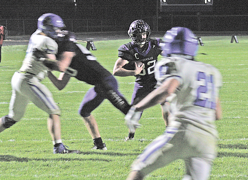 BOYCEVILLE running back Owen Rydel followed a teammate’s block en route to one of his two rushing scores against Clear Lake. The Bulldogs defeated the Warriors 58-10 in their annual homecoming game played Friday, September 27 at Evenson Field. —photo by Joel DeWitt