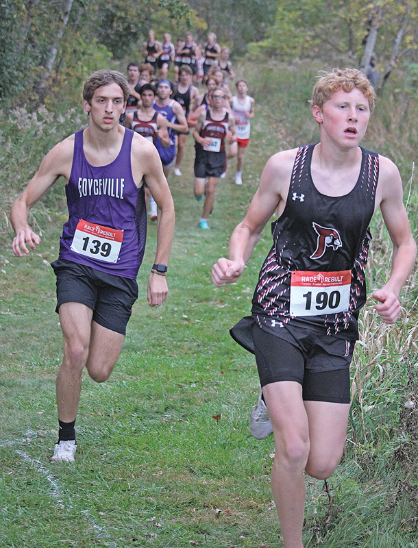 TOP DOG — Michael Montgomery (left) was the top finisher for the Boyceville boys’ team at the Spring Valley Cross Country meet held October 3. Montgomery finished in 15th place. —photo by Shawn DeWitt